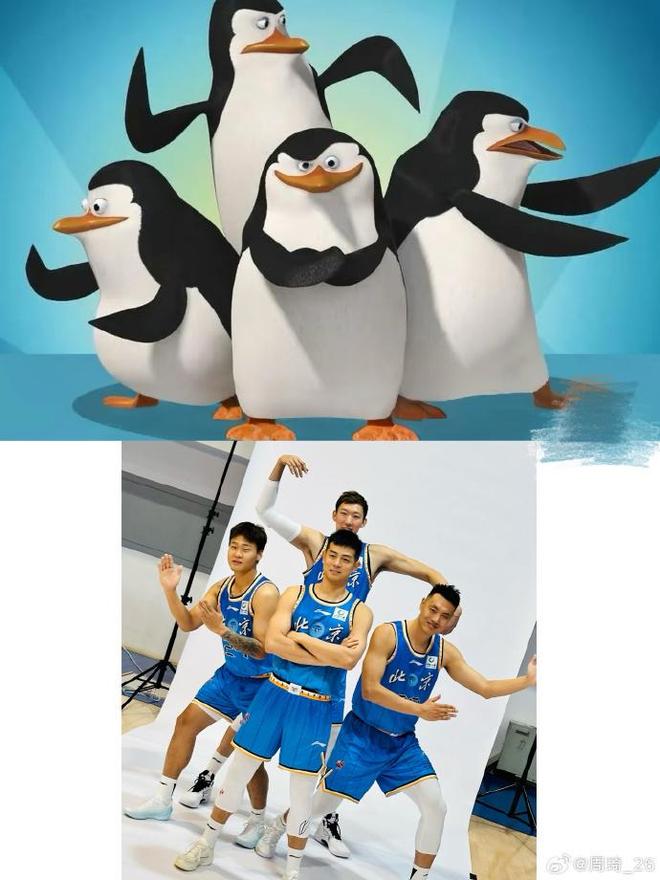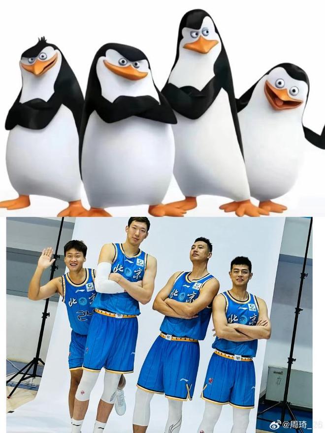 周琦如今通過社媒曬出與趙睿、翟曉川、方碩一起拍攝的新賽季定妝照,他們也是模仿卡通電影《馬達加斯加的企鵝》姿勢拍照,周琦還配文寫道:“又是一年新賽季!”